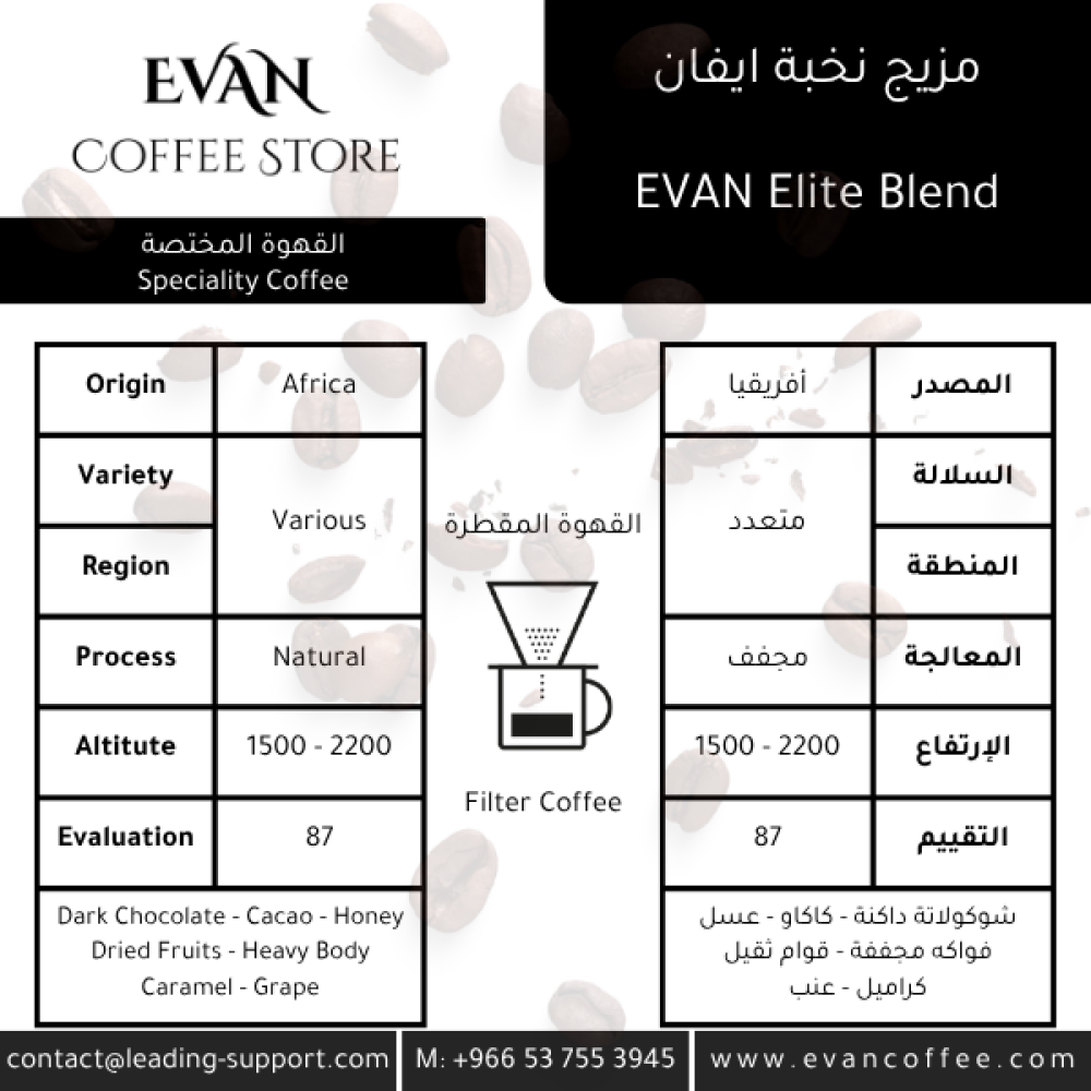 • مزيج نخبة ايفان - مزيج من القارة الأفريقية مثالي للقهوة المقطرة ومناسب لمشروبات اسبريسو